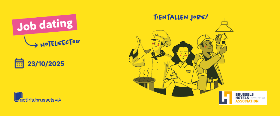 Donderdag 23 oktober om 9u30 organiseren Actiris en Brussels Hotels Association een Job Dating bij Actiris (Astrotoren). 11 hotels zijn op zoek naar een vijftigtal kandidaten met uiteenlopende profielen.