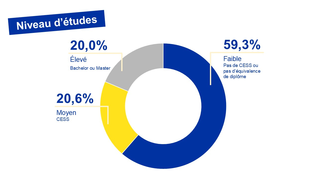 Evolution sur base annuelle : concernant le niveau d'études: +0,2% (+137 personnes) pour les chercheurs d'emploi faiblement qualifiés, -0,9% (-175 personnes) pour les personnes moyennement qualifiées et +7,8% (+1.375 personnes) pour la catégorie hautement qualifiée.
